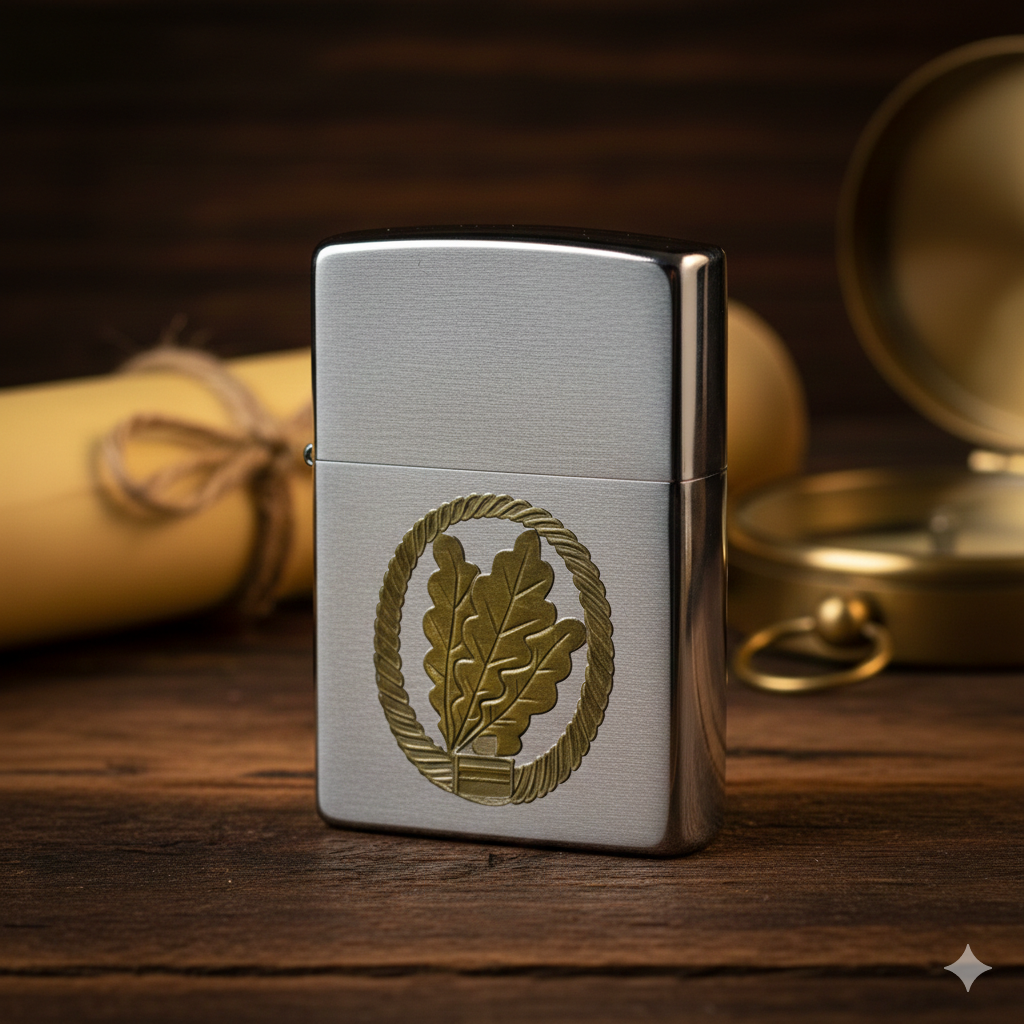 Barettabzeichen der Jägertruppe JägTr – ZIPPO Sturmfeuerzeug m. Diamantgravur – German Army