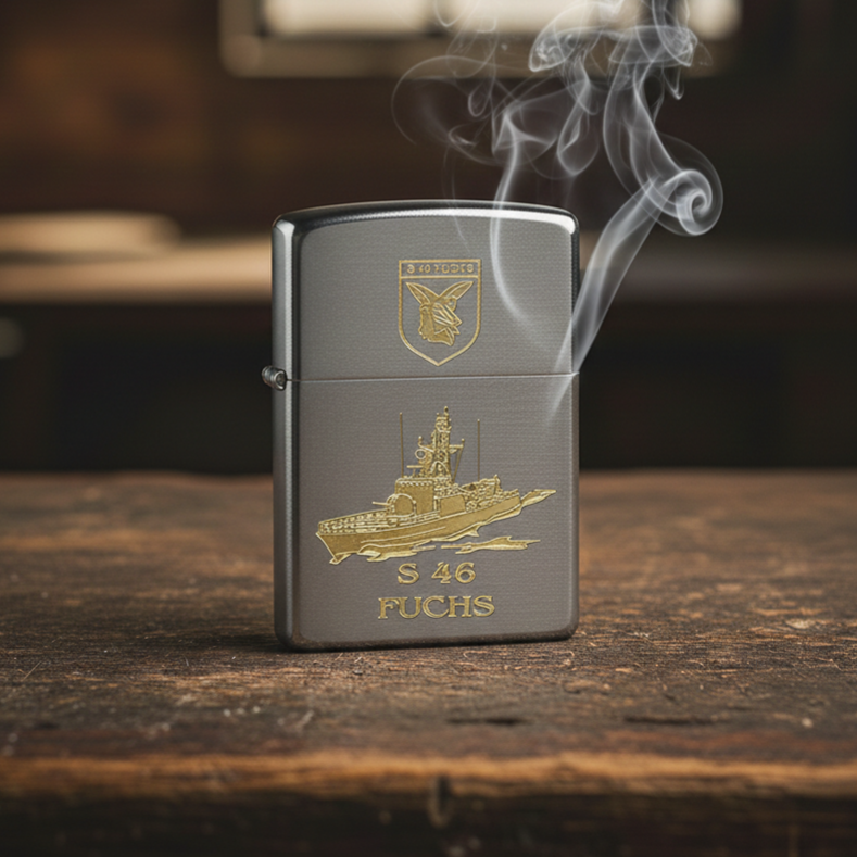 S46 Schnellboot FUCHS P6146 – ZIPPO Sturmfeuerzeug m. Diamantgravur – German Navy