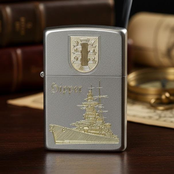 Ein Stück Zeitgeschichte für die Hosentasche. Dieses originale Zippo Sturmfeuerzeug besticht durch eine detailgetreue und hochwertige Diamantgravur der legendären Admiral Hipper. Ein unverzichtbares Sammlerstück für Liebhaber maritimer Geschichte und technischer Präzision.