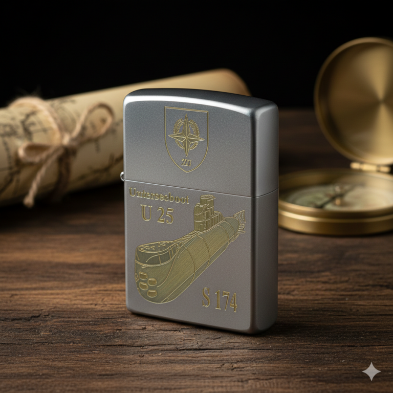 Original Zippo Sturmfeuerzeug mit hochwertiger Diamantgravur des U25 U-Boot S174. Ein edles Geschenk für Marine-Fans & Sammler. Jetzt online kaufen!